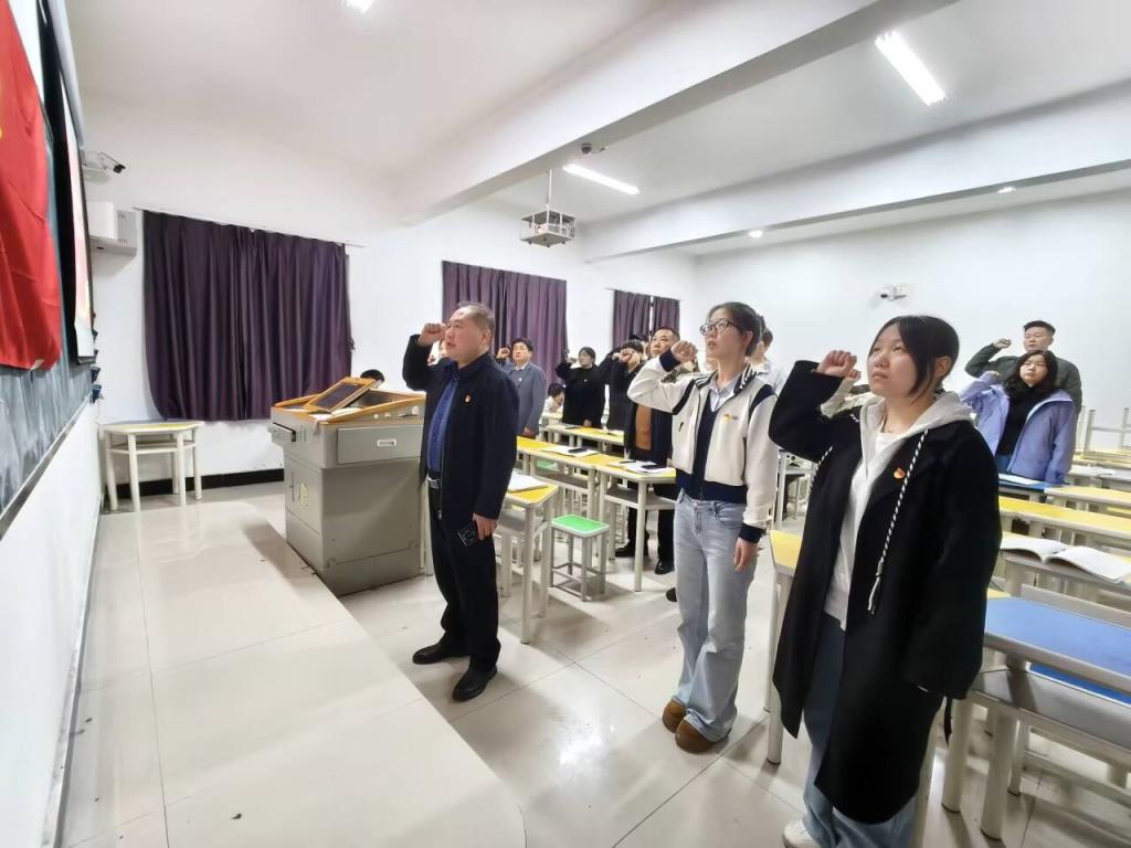 为深入学习贯彻党的创新理论,强化党员党性修养,规范党员发展程序,增强党支部凝聚力与战斗力,2026年3月23日下午,直属继续教育学院支部在四合院103教室召开树立和践行正确政绩观主题党日活动暨预备党员宣誓大会。支部全体教职工党员、学生党员、预备党员、入党积极分子及入党申请人参加活动,活动由支部组织委员主持。